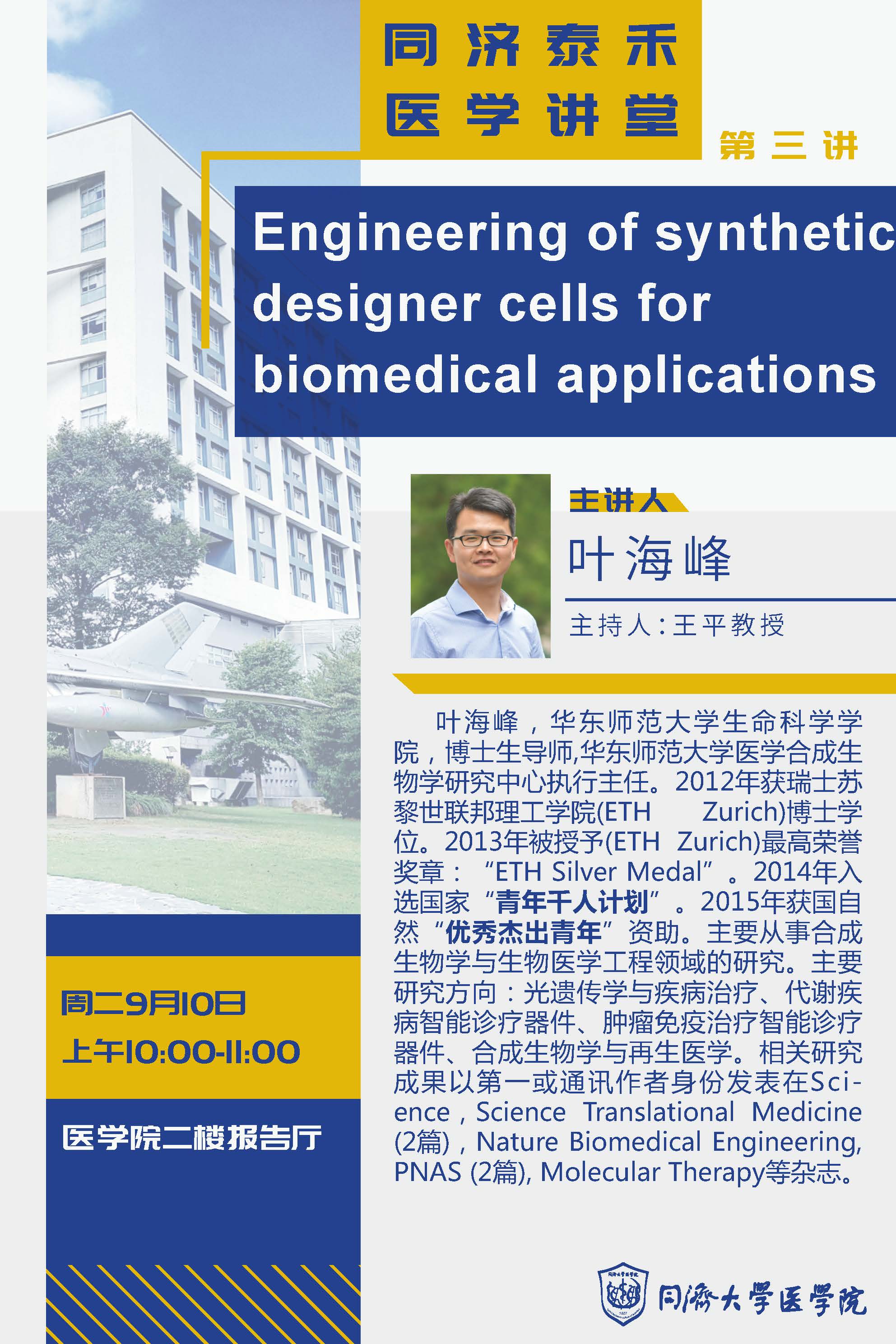 泰禾医学讲堂第3讲:Engineering of synthetic designer cells for biomedical applications