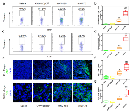 Figure 2.The tetramer assay of OVA-specific CD8+ T cells, and tumor-infiltrating condition of T cells elicited by mNVs in prophylactic test.
