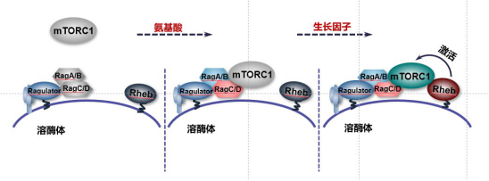 mTORC1的激活主要由氨基酸和生长因子信号协同作用,其中氨基酸信号主要通过Rags复合物调控mTORC1在溶酶体上的定位,而生长因子信号主要是通过激活Rheb进而促进mTORC1的活性【2, 5】。