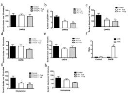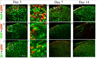 图解:首次证明 pERK 在慢性痒模型小鼠的脊髓背角神经元中持续表达(上);组胺H4受体拮抗剂而非H1受体拮抗剂抑制慢性痒行为和脊髓pERK的表达(下)。