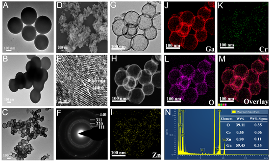 图2. 以粒径为300 nm碳球为模板合成中空长余辉纳米材料的数据表征图