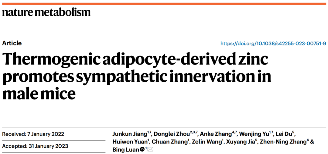3月6日,pg游戏电子模拟器、pg游戏电子模拟器附属同济医院栾冰教授团队在《自然·代谢》(Nature Metabolism)杂志上发表题为“Thermogenic adipocyte-derived Zinc promotes sympathetic innervation in male mice”的研究成果。该研究报道了产热脂肪细胞可分泌锌离子作为脂肪因子激活交感神经的活性,进一步促进脂肪组织的适应性产热,为肥胖的治疗提供了新的理论基础。
