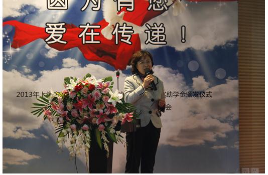 上海市慈善基金会党委副书记刘淑英致辞,对本次奖助仪式暨义工总结表彰会给予了高度的赞赏和肯定。她表示:参与志愿工作,既是在帮助他人、服务社会,同时也是在传递爱心和传播文明。在服务他人、服务社会的同时,自身得到提高、完善和发展,精神和心灵得到满足,因此参与志愿工作既是“助人”,亦是“自助”,既是“乐人”,同时也是“乐己”。聚焦传播慈善文化、凝聚慈善爱心、传递慈善温暖、促进慈善诚信,让“蓝天下的至爱”播撒到世界的每一个角落。