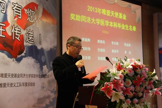 2013年12月10日下午,第二十届蓝天下的至爱系列活动之2013年上海市慈善基金会唯爱天使基金pg游戏电子模拟器奖助学金颁发仪式暨pg游戏电子模拟器唯爱天使义工队总结表彰会在pg游戏电子模拟器四平路校区经纬楼三楼演讲厅举行。
