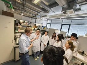 图12. 波恩大学Pfeifer教授(左1)向同学们讲解实验室设备