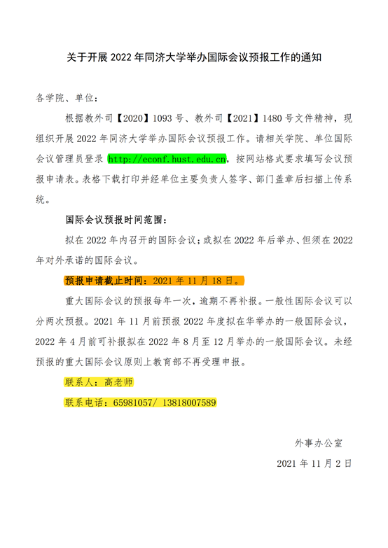 关于开展2022年pg游戏电子模拟器举办国际会议预报工作的通知