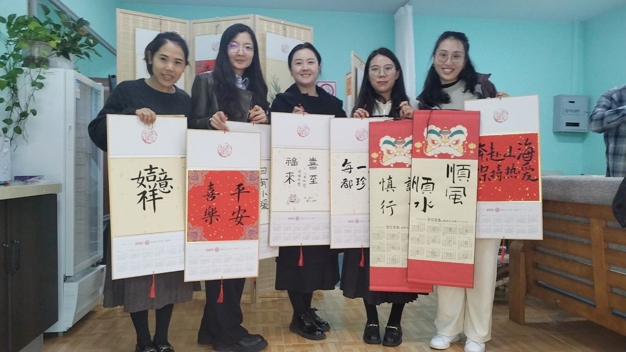 在绘制新年挂历过程中,大家相互交流、协作,不时分享着绘画技巧与创意构思。平日里忙碌于教学、科研等工作的老师们,此刻沉浸在艺术创作的乐趣里,放松了身心。