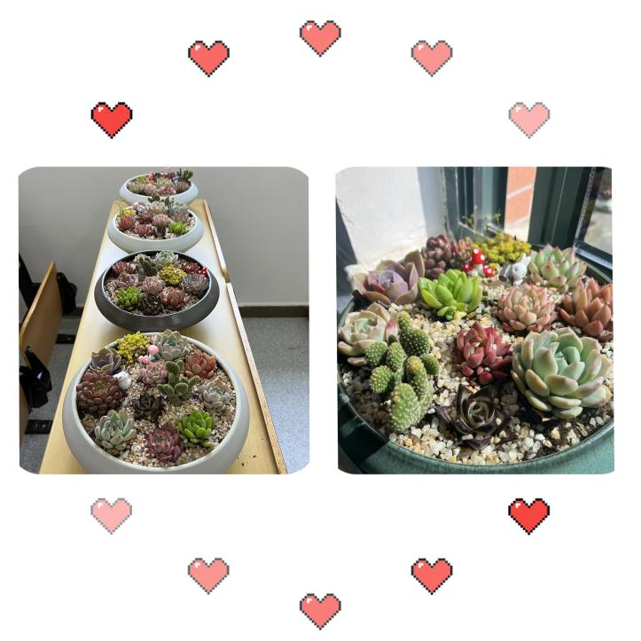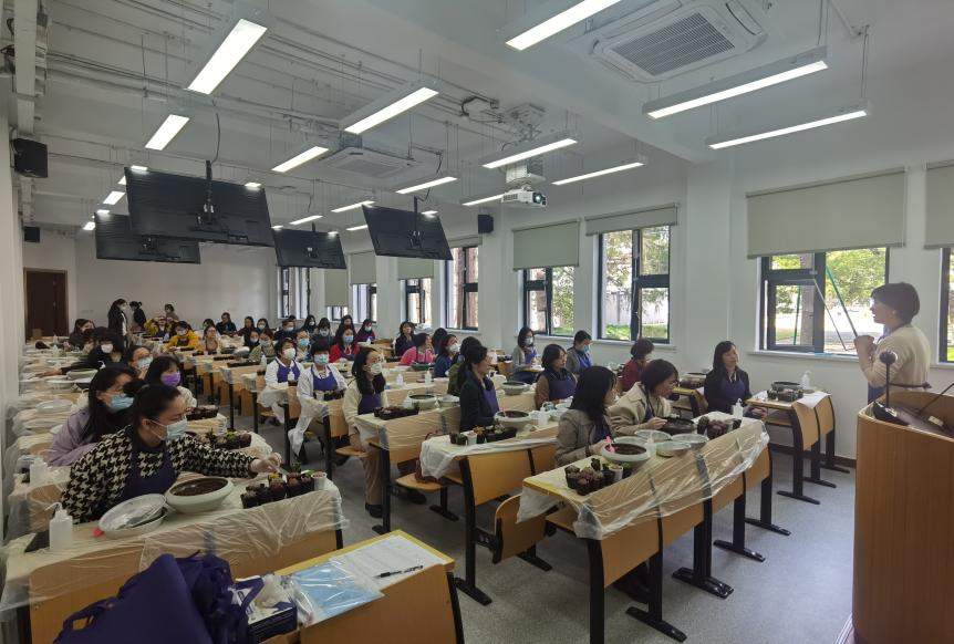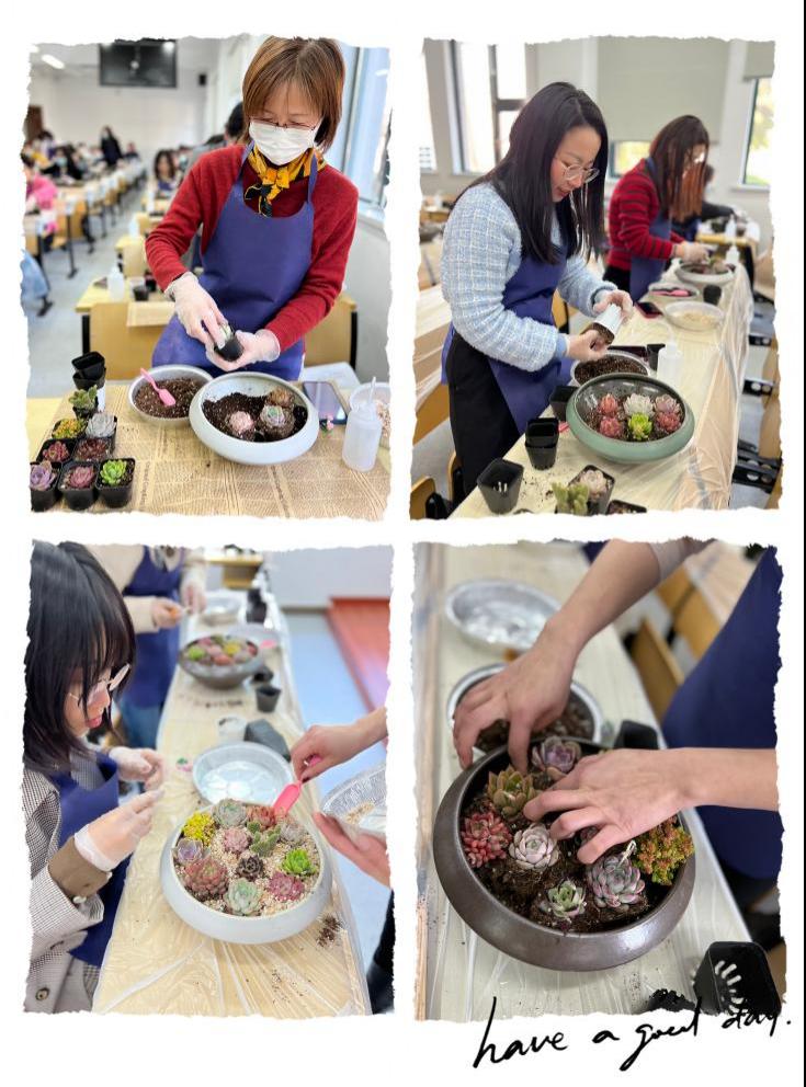 在这个女性能顶半边天的时代,坚韧不拔也是中国当代妇女的真实写照。多肉植物因其为耐旱植物,对土壤的要求不高,所以寓意着坚韧顽强,与此次活动主题完美契合。在这次活动中,女教师们不仅学到了多肉盆栽种植的知识,提高了动手实践能力,也在这个属于她们的节日里收获了更多的美好。