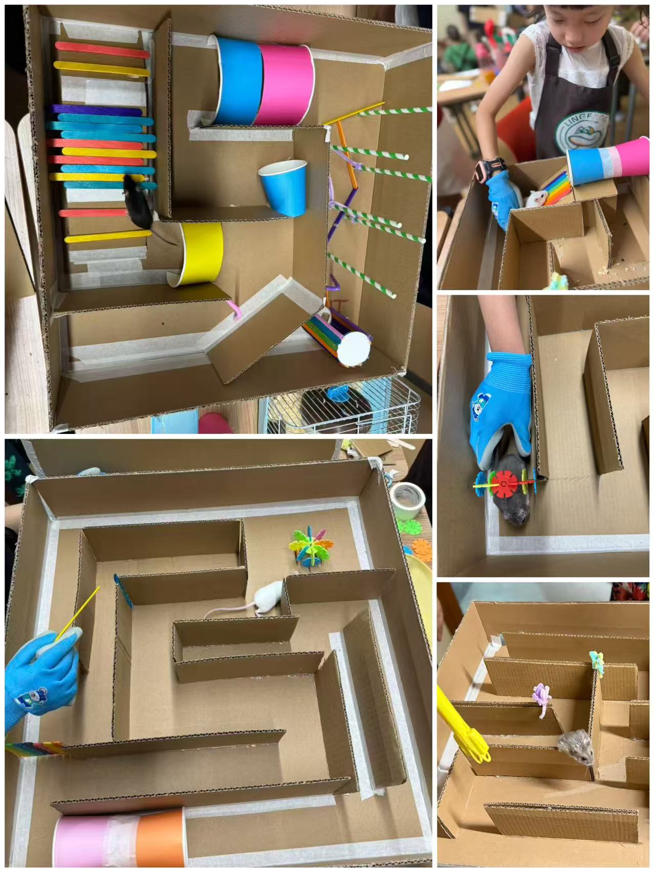 “鼠迷宫设计搭建”环节则成为创意与协作的舞台。每组家庭充分发挥想象力与动手能力,利用活动提供的材料,构思并搭建专属迷宫。有的家庭设计了“多岔路口挑战型”迷宫,有的则打造了“障碍重重趣味型”迷宫,家长与孩子分工合作,测量尺寸、拼接通道、设置关卡,现场充满欢声笑语。完成搭建后,各组还踊跃分享设计思路,展现出丰富的创造力与逻辑思维。