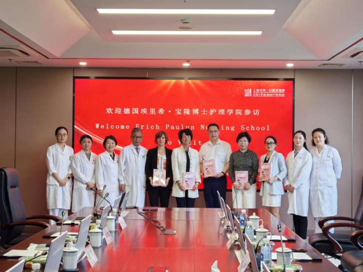 在附属东方医院,代表团听取了医院总体发展情况、护理团队建设、跨文化护理实践及人工智能技术应用的专题介绍,深入了解医院在护理服务和科技创新融合方面的特色与成果,进一步推动了中德双方在护理领域的合作交流。
