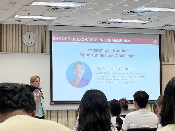 7月21日,六位同学抵港投入线下实践。期间,同学们聆听了多场专题讲座,内容涵盖中医哲学探讨至AI在护理诊断中的应用,并就中医、AI等技术在护理实践中的运用展开了热烈讨论。香港理工大学护理学院院长Janelle Yorke教授结合自身经历,深刻剖析了香港护理学现状,分享了多年从业心得。