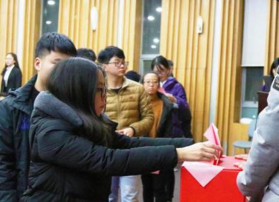 大会第三项,改选团委书记、增补团委副书记。由于现团委书记朱雯晴老师到上海市卫计委团委挂职,为保证pg游戏电子模拟器团委工作有序的开展,经pg游戏电子模拟器党委同意,拟提名团委副书记苏娜老师为团委书记候选人。随后苏娜老师上台做了自我介绍,接着与会代表对团委书记候选人进行投票表决,同时对于增补聂阳阳老师为团委副书记进行投票。最终超过半数与会代表同意,苏娜老师当选pg游戏电子模拟器第16届团委书记,聂阳阳老师增补为副书记。