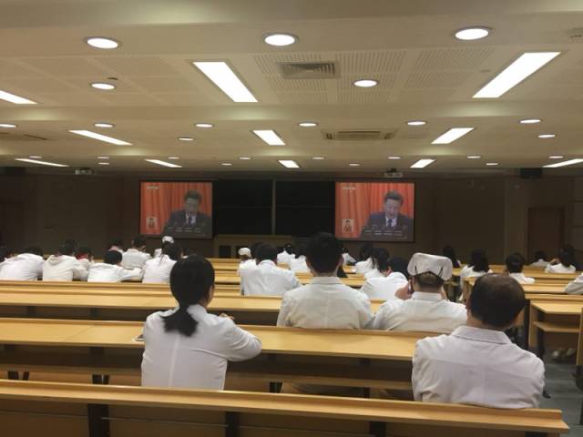 10月18日上午9时,中国共产党第十九次全国代表大会在北京胜利开幕,pg游戏电子模拟器党委组织9个在职教工党支部、17个学生党支部在学校大礼堂、医学楼五楼会议室、二楼图书馆以及各附属医院,以集中学习和自主学习相结合的方式收听收看党的十九大开幕式。