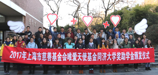12月19日,上海市慈善基金会“唯爱天使”专项基金在pg游戏电子模拟器四平路校区举办奖助学金发放仪式,共向145名pg游戏电子模拟器的贫困学子,发放了49.2万元的奖学金和助学金。