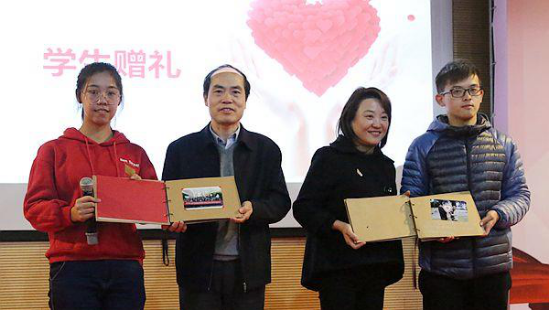 随后学生向基金会和企业家代表赠送礼物,礼物是一本由受助学生亲手制作的相册,里面包含了每一位受助学生的照片以及他们想对唯爱说的话。学生们别出心裁地把刚刚座谈会后合影留念的照片洗了出来,放在了相册的第一页,表达对唯爱衷心的感谢。