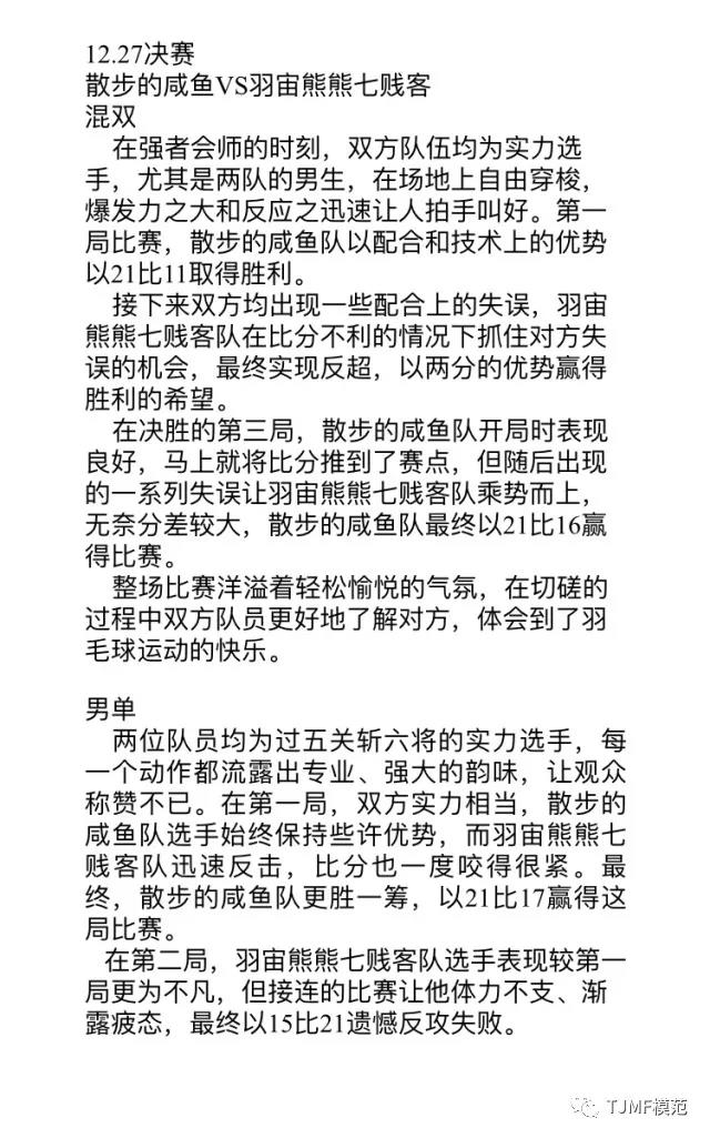 也特别感谢为这次羽菁赛付出的同学们