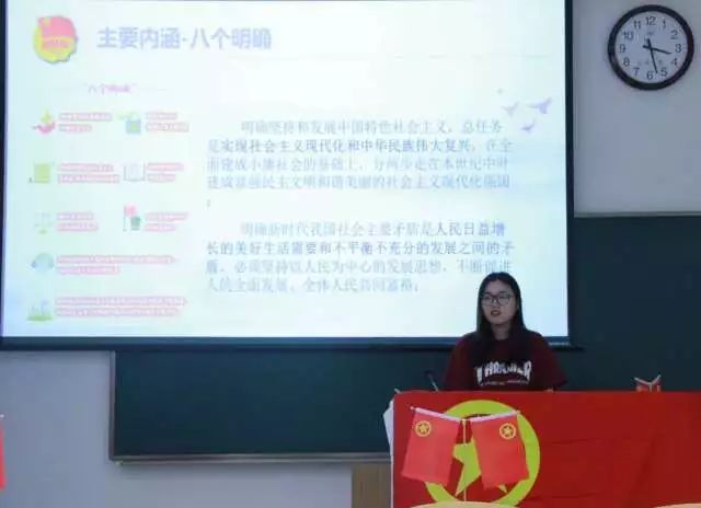 主题团课中,五位同学更是讲的精彩热烈。林可同学向我们讲述了习近平总书记接地气的语录背后的内涵与意义;高定伟同学带领我们学习两会相关知识以及中国的伟大变革;常启航同学以举例的形式向我们介绍同时代人真实的奋斗史,对于我们如何成为优秀青年有更加明确的指导意义;倪礼楠同学也以生动激昂的语言向我们讲述了习近平总书记的语录;吴佳馨同学以身边及社会时事向我们讲述如何做一名团员,一名合格优秀的团员。