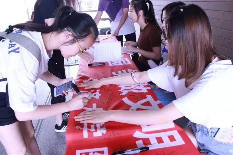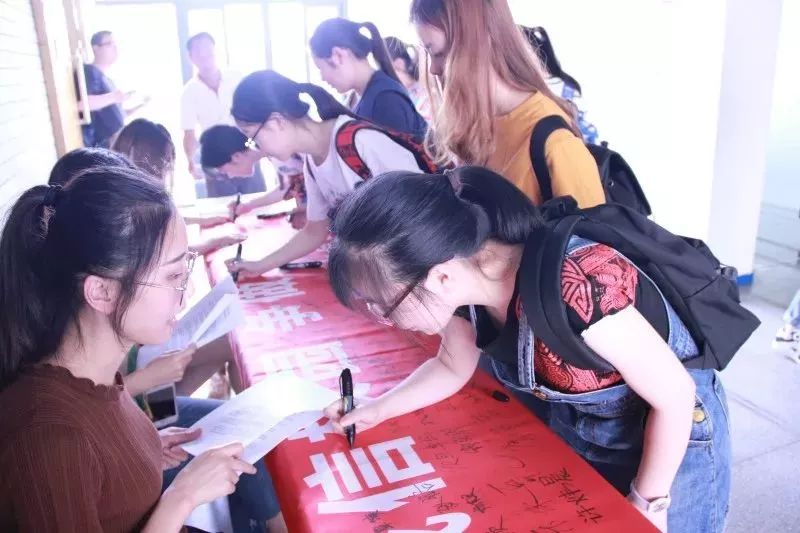 pg游戏电子模拟器党委副书记曾盈老师带领17级、16级本科生以及研究生代表在诚信的横幅上签上自己的名字,共创诚信校园,争做文明学生。