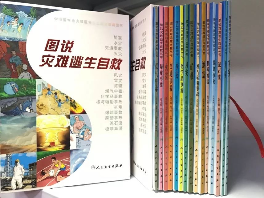 这是我组织骨干队员编写的《图说灾难逃生自救丛书》,共15本分册,用老少咸宜的漫画形式向民众普及灾难自救知识。