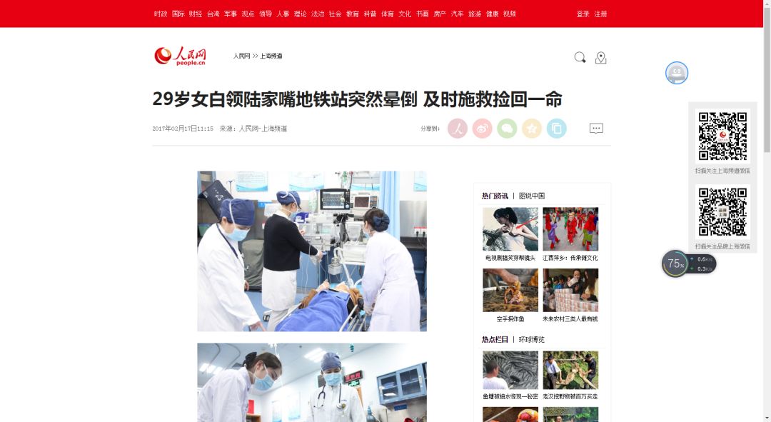去年冬天,一位29岁女白领在陆家嘴地铁站倒地猝死,经过我们培训的陆家嘴地铁站工作人员,利用除颤仪现场抢救并火速转运至东方医院,最终患者康复出院。