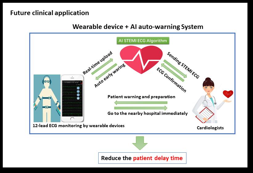 1. 在院前,将通过可穿戴设备+人工智能心电诊断系统实现心梗的自动预警。