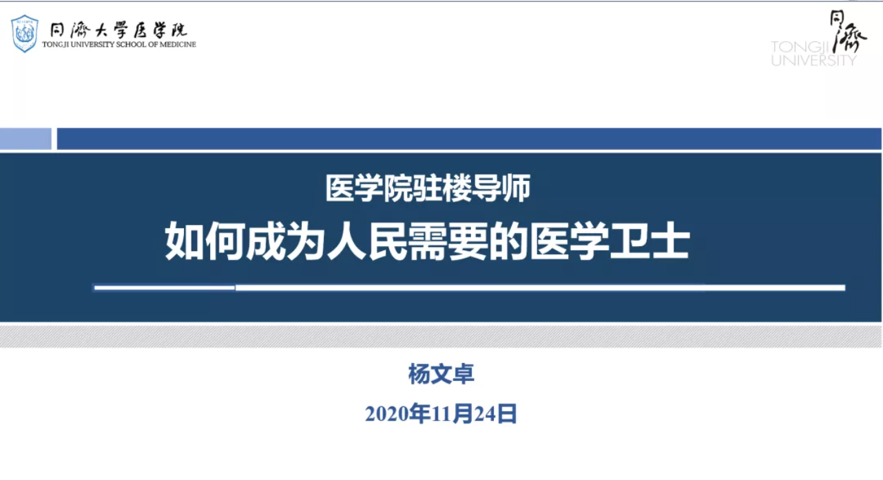 11月24日晚6点,pg游戏电子模拟器副院长杨文卓教授做客驻楼导师讲堂,在四平路校区西南十楼给同学们带来了主题为“如何成为人民需要的医学卫士”的精彩讲座。