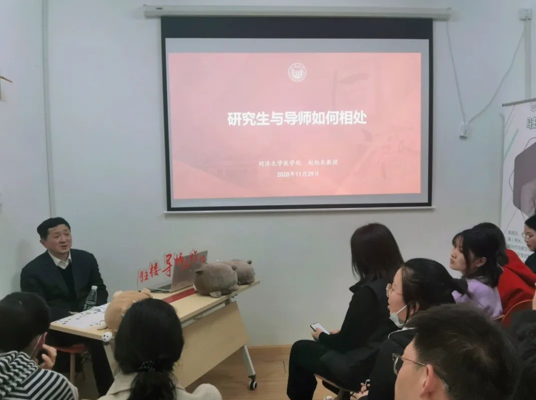 活动伊始,赵教授询问了参会同学与导师相处的基本情况,就同学们的种种疑惑,讲解如何正确定位师生关系、处理与导师之间的“人情世故”。师生关系是一种特殊的人际关系,与中国传统文化的影响息息相关。在与导师相处过程中,要注意伦理界限,尊师重道是中华民族的传统美德,在现代教育体系中,应该注重建立民主、平等、尊重自主性的和谐新型师生关系。