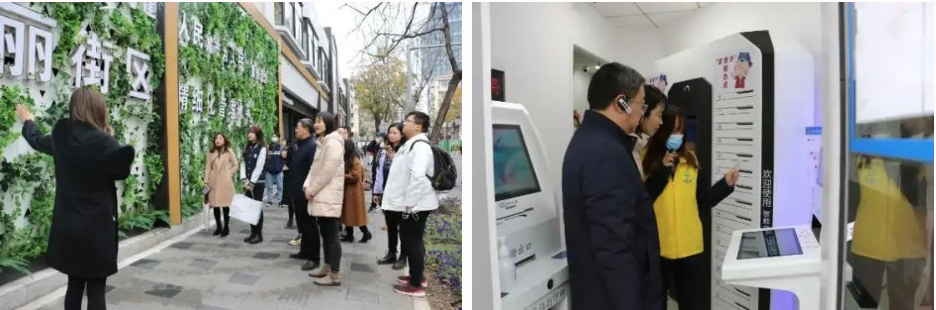 在启动仪式之前,普陀团区委书记杨莉萍一行与来自pg游戏电子模拟器、法学院的代表,一起参观了黄陵路沿街的安塞居委会、一网通办24小时自助服务点、共生树墙绘等。