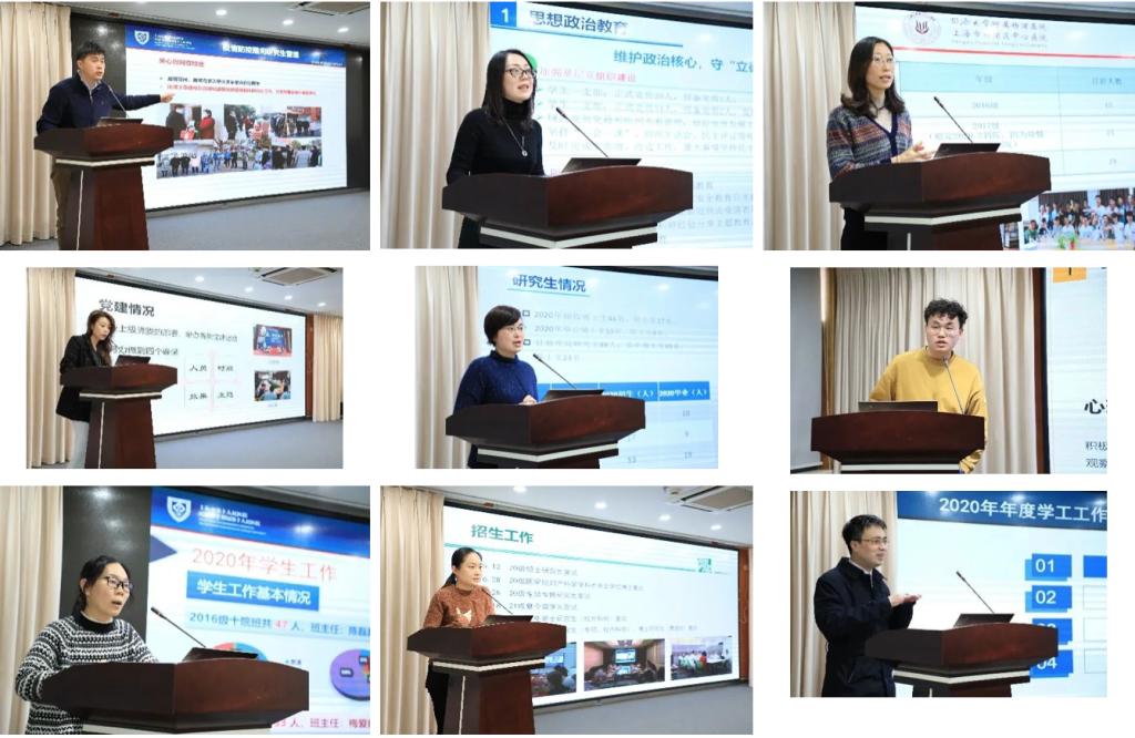 pg游戏电子模拟器附属第十人民医院张扬、梅爱红,附属同济医院黄蕾、附属东方医院王玮玮、附属上海市肺科医院沈瓅、附属第一妇婴保健院成星、附属杨浦医院张小丽、附属养志康复医院邵俊杰、附属皮肤病医院谭飞分别代表各附属医院围绕学生基本情况、思想政治引领创新、学生工作特色成果、疫情防控工作等展开2020年度学生工作总结,并对下一年度的工作提出计划与展望。
