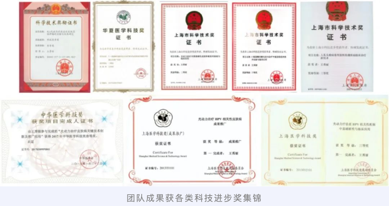 二十余年来,光医学团队在王秀丽教授的带领下,深深扎根于光医学领域,紧紧把握并跟随国际前沿学科及新技术的发展趋势,从临床实际工作出发,把长期困扰和严重影响人民健康的顽固性、难治性皮肤疾病列入学科攻坚克难的科研目标,再把科研成果再转化为临床应用,更好地解决患者切身疾苦,为皮肤疾病光医学诊疗的临床,及基础研究工作作出了巨大贡献。基于以上研究成果,团队先后牵头制定了两版《氨基酮戊酸光动力疗法临床应用指南》和《2019紫外线治疗皮肤病临床应用专家共识》;发表学术文章200余篇,其中,SCI论文100余篇;主编著作4部、参编11部;承担包括科技部国家重点研发计划、国家自然科学基金(20项)等省部级及以上课题70余项;团队参与的科研项目,先后获得省部级科技一等奖1项、二等奖2项、三等奖4项、成果推广奖1项;连续7年主办中国皮肤科三大学会光动力专场、举办国家级光动力医学等继续教育项目15期、上海国际光动力高峰论坛6届,团队成员参与国际大会40余人次,主持国际会议9次,并于去年成功申办光动力领域顶级国际大会“2023年国际光动力大会”,在世界舞台上闪动着来自中国的光动力华彩,极大地推动了学科发展。