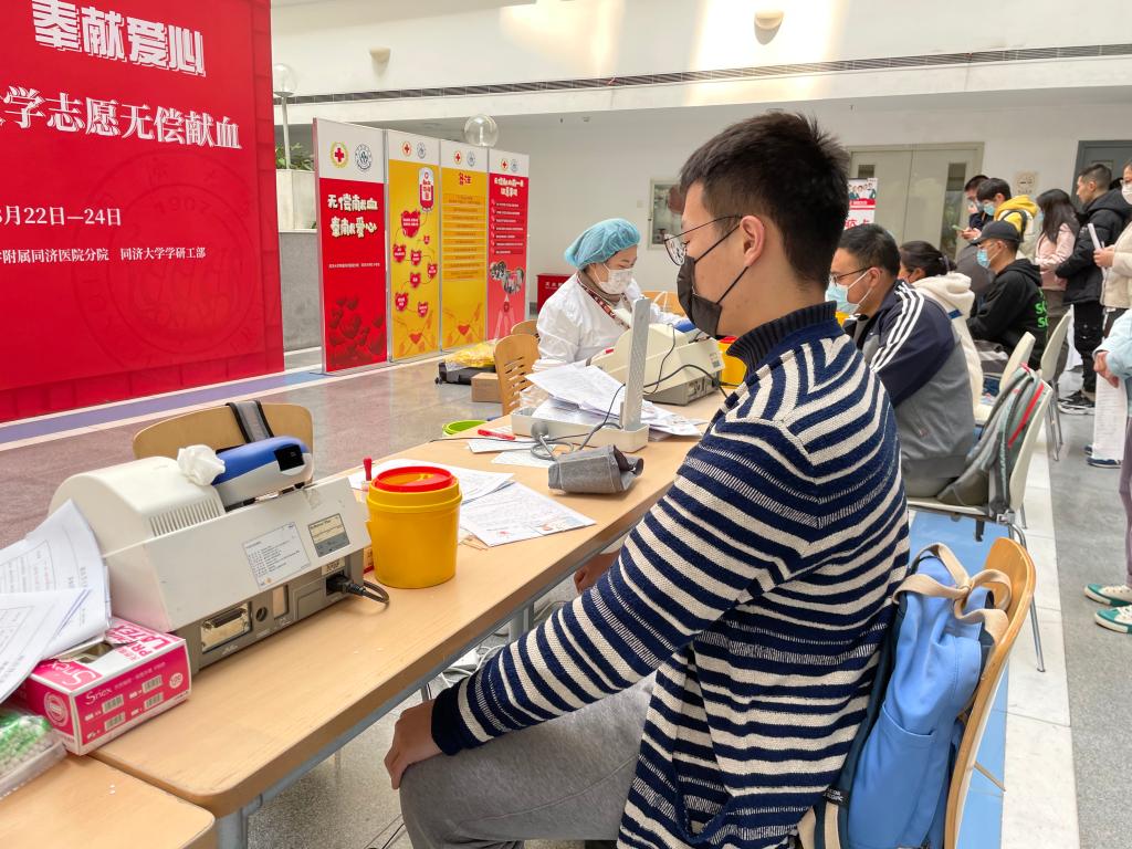 从3月22日开始,我院师生参与由校医院、校红十字会组织的无偿献血活动。本次献血活动于四平路校区瑞安楼一楼进行,从上午10点开始,可以看到同学们排着长队前来献血,pg游戏电子模拟器党委副书记彭震伟、附属同济医院分院党总支书记毕婉蓉、我院党委副书记曾盈到现场慰问。献血者们首先要填写个人信息单及报名表,而后进行血压的测量、化验血型等基本检测,献血过程中志愿者们积极配合工作人员,耐心解答同学们的问题,缓解同学们的紧张情绪,细心提醒献血过程中及献血后要注意的事项。截止目前, 我院已有87名师生献出自己的一份爱心,这些新鲜血液将会挽救更多危难之中的生命。同学们的点滴爱心,或许能在某一时刻,某一地点挽救一个人的生命。
