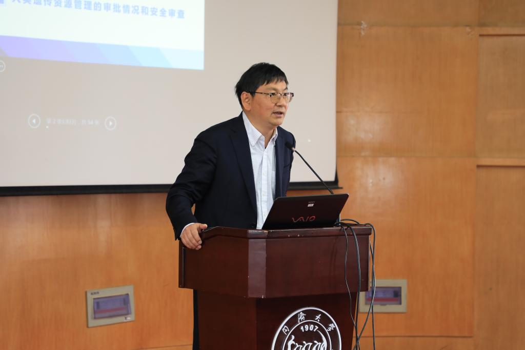 习近平总书记指出:“生物安全问题已经成为全世界、全人类面临的重大生存和发展威胁之一,必须从保护人民健康、保障国家安全、维护国家长治久安的高度,把生物安全纳入国家安全体系。” 十三届全国人大常委会第二十二次会议2020年10月17日表决通过了生物安全法,该法强调要加强人类遗传资源与生物资源管理,并为《中华人民共和国人类遗传资源管理条例》(以下简称《条例》)的施行提供了国家法律依据。为了广泛宣传《条例》,进一步提高pg游戏电子模拟器师生的安全意识和法律意识,由院科技办主办的人类遗传资源管理的法规与实务宣讲会于4月8日在二楼报告厅及线上平台同步进行。主讲人为上海生物样本库工程技术研究中心主任暨上海医药临床研究中心主任甘荣兴研究员。校科研管理部副部长马彬教授、pg游戏电子模拟器党委书记张军教授、副院长王平教授、院科研办主任彭鲁英教授、各课题组组长、课题组成员、本部研究生等出席宣讲会现场,各附属医院相关科研人员、沪西校区研究生等在线上同步参会。