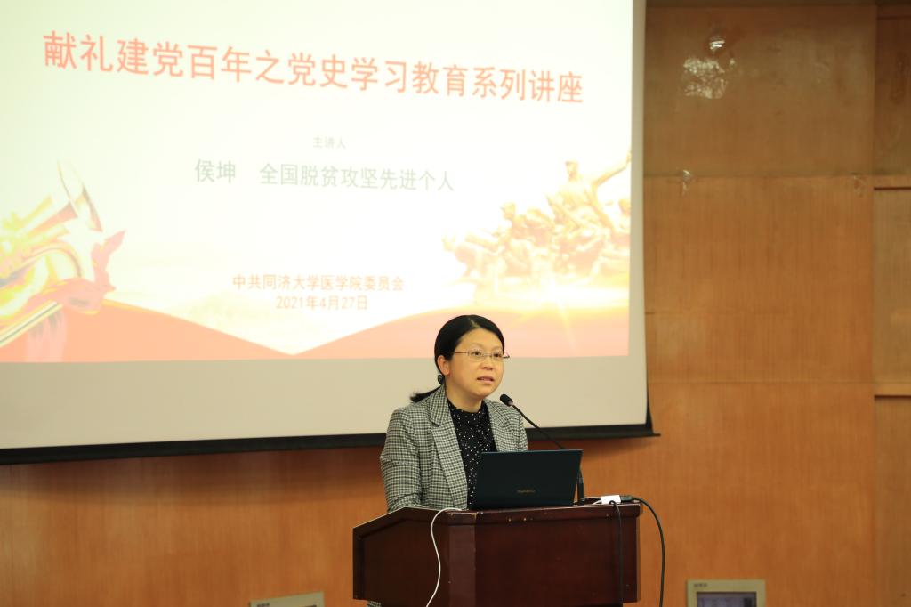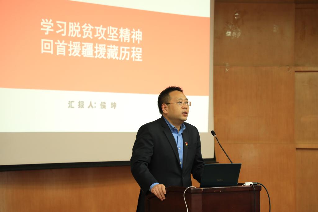 4月27日,pg游戏电子模拟器在医学楼二楼报告厅举办献礼建党百年之党史学习教育系列讲座,邀请全国脱贫攻坚先进个人侯坤作“学习脱贫攻坚精神 回首援疆援藏历程”主题讲座,pg游戏电子模拟器百余位党员师生代表参加。讲座由pg游戏电子模拟器党委副书记曾盈主持。