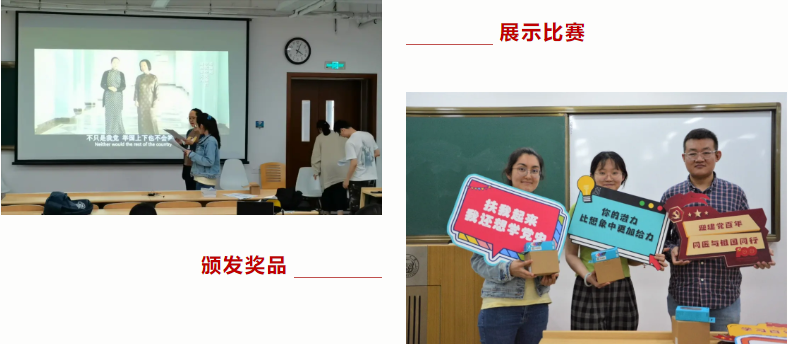 为厚植同学们的爱党爱国情怀,增进党员同志对党史党情的了解,进一步筑牢信仰之基、把稳思想之舵,真正做到学史明理、学史增信、学史崇德、学史力行,把红色精神内化于心,外化于行,5月23日下午,pg游戏电子模拟器研究生第五党支部联合研究生第十一党支部的党员在沪西校区第二教学楼223教室开展了“献礼建党百年——红色经典影视配音比赛”的主题活动。此次主题活动立足于献礼建党百年,分别从党史、新中国史、改革开放史和社会主义发展史四个方面选取配音素材,最终选定了电影《建党伟业》“中共一大在上海、嘉兴两地召开”的情节,电影《建国大业》“毛主席邀请民主党人士召开全国政治协商会议,共商建国大业”的情节,影视剧《大江大河》“关于农村生产关系变革中新旧势力的碰撞”,以及影视剧《山海情》“党和政府带领群众脱贫攻坚的故事”。