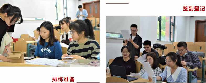活动伊始,工作人员统一组织大家观看了四段经典影视片段,初步熟悉配音台词。参赛人员通过抽签的方式匹配分组,领取台词剧本,组内自行分配角色并组织排练。排练过程中,大家都热情投入,饱含深情地演绎每个角色。最后各小组依次上台进行配音展示,由全体参赛人员打分,获得分数最高的前三名同学胜出,颁发奖品。