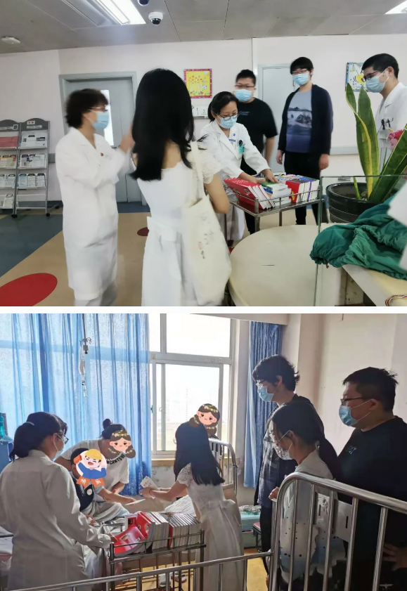 六一儿童节下午,学生党员代表在雷啸天老师的带领下前往同济医院儿科病房,戴好口罩、做好消毒后进入病房看望可爱勇敢的小患者们,小朋友们很开心地任选一本自己喜欢的读物和祝福小卡片,现场氛围温馨有爱。剩余读物因疫情期间不便借阅,暂时存放于儿科病房示教室,日后供小朋友们阅读
