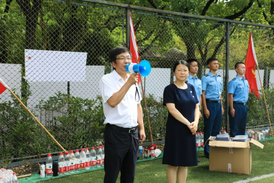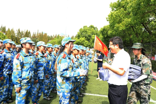 8月30日上午九点半,校领导走进训练方阵,与教官、随训教师和同学们亲切握手、交谈并发放慰问品。陈杰校长发表重要讲话,强调了在疫情防控中开展军训的机会来之不易,紧接着提出军训意义有三:一是向解放军教官们学习他们的忠诚;二是学习他们的舍生取义精神;三是学习他们的有纪律听指挥。