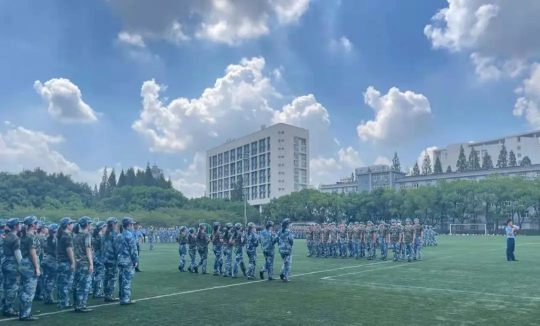 在军训的大部分时间里,同学们最主要的任务还是分列式训练,为最后的会操做充分准备。在这五天的训练中,即使脚磨出了泡,皮肤被烈日灼伤,腿脚酸痛,也没有击垮同学们坚韧不拔、艰苦奋斗的意志。训练场上的他们英姿飒爽,整齐划一,一颗颗坚挺的竹子构成了一片片竹林,成为日下最耀眼的风景。