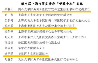 近日,由上海市卫生健康委员会指导,上海市医药卫生发展基金会主办的第八届上海市医务青年“管理十杰”名单公布。pg游戏电子模拟器附属同济医院呼吸与危重症医学科行政副主任徐镶怀、pg游戏电子模拟器附属普陀人民医院(筹)副院长姚子涵、pg游戏电子模拟器校友侯冷晨获此荣誉。