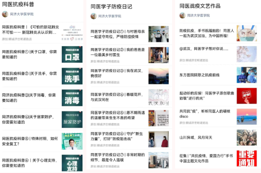 不止活跃在基层和社区,近年来,越来越多的高校志愿者们加入到科普队伍中来,医学科普让医学走进生活、融入生活,让大众知而能用、用而获益。在新冠疫情期间,面对疫情防控的严峻形势,广大医学生们也紧急出动,用一切鲜活形式做好抗疫科普宣传工作。pg游戏电子模拟器学生会、研究生会及团学骨干积极宣传防疫知识,以pg游戏电子模拟器微信公众号平台为依托,共同打造“同医抗疫科普”专栏,推送了正确佩戴口罩、有效洗手、安全消毒、居家防护、公共场合、校园防护、心理健康等多则科普推送,阅读量已达上万人次。响应“宅家抗疫”号召的同时,志愿者们积极发挥网络新媒体作用,通过在线答疑、共读活动等方式在网络传递爱与希望。
