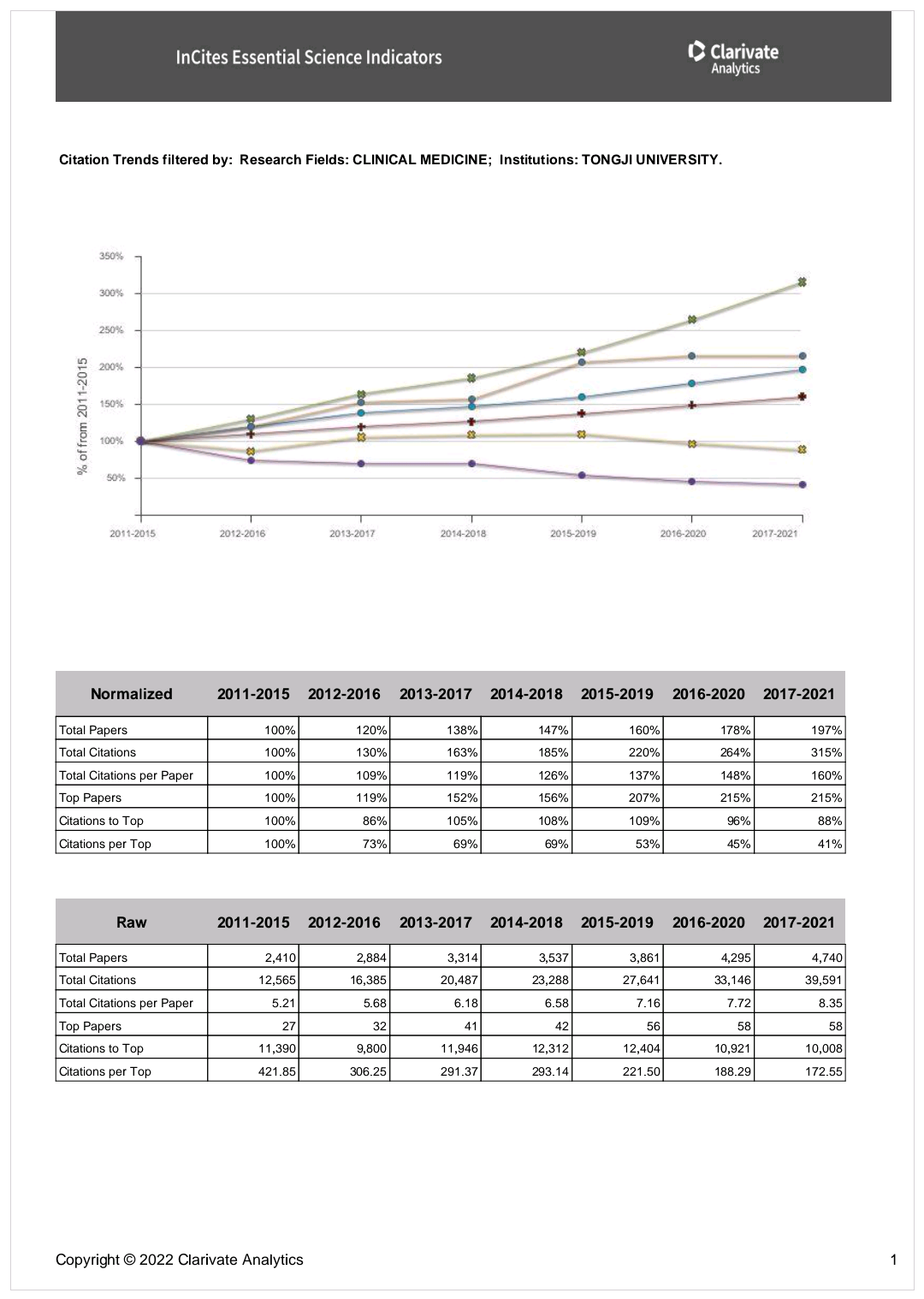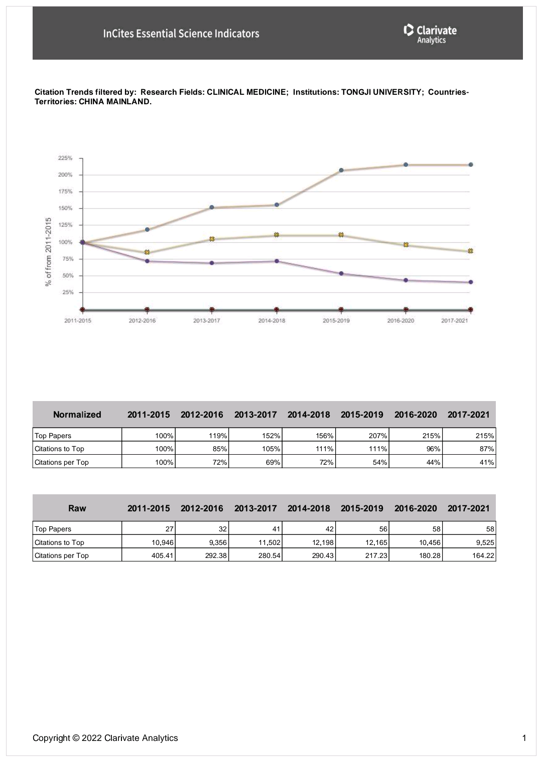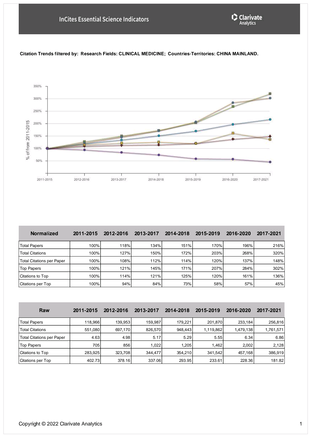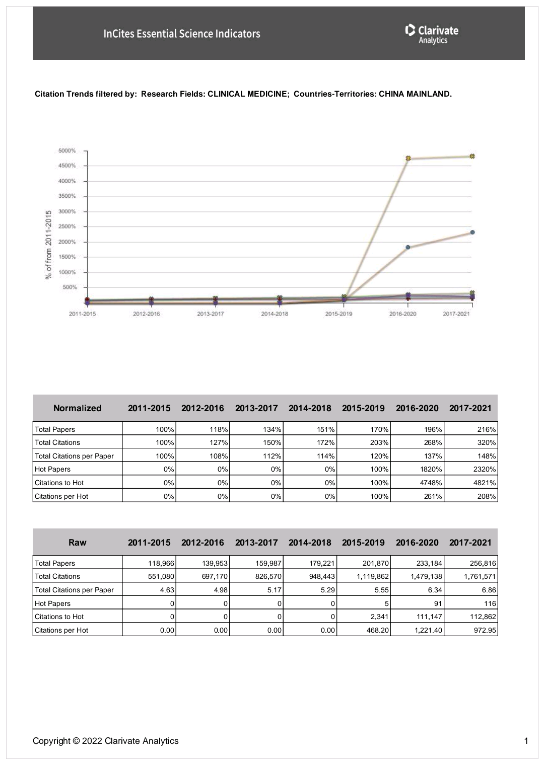 ESI(Essential Science Indicators)是科睿唯安(Clarivate Analytics,原汤森路透)在汇集和分析SCIE/SSCI所收录的学术论文及其所引用的参考文献的基础上建立起来的分析型数据库,是衡量科学研究绩效、跟踪科学发展趋势的基本分析评价工具,已成为当今世界范围内普遍用以评价高校、学术机构、国家/地区国际学术水平及影响力的重要评价指标工具之一。ESI按22个学科领域,分别对全球的国家和地区、研究机构、论文以及个人的总被引频次进行滚动统计并排序,统计结果每2个月公布一次。高被引论文(Highly Cited Paper)是指按照同一年同一个ESI学科发表论文的被引用次数按照由高到低进行排序,排在前1%的论文。