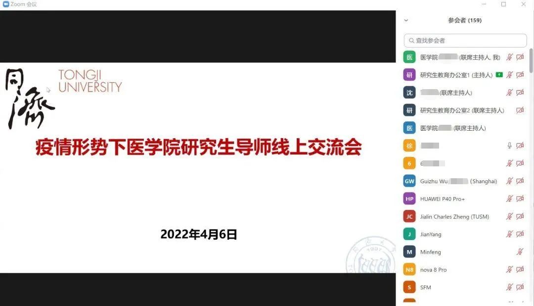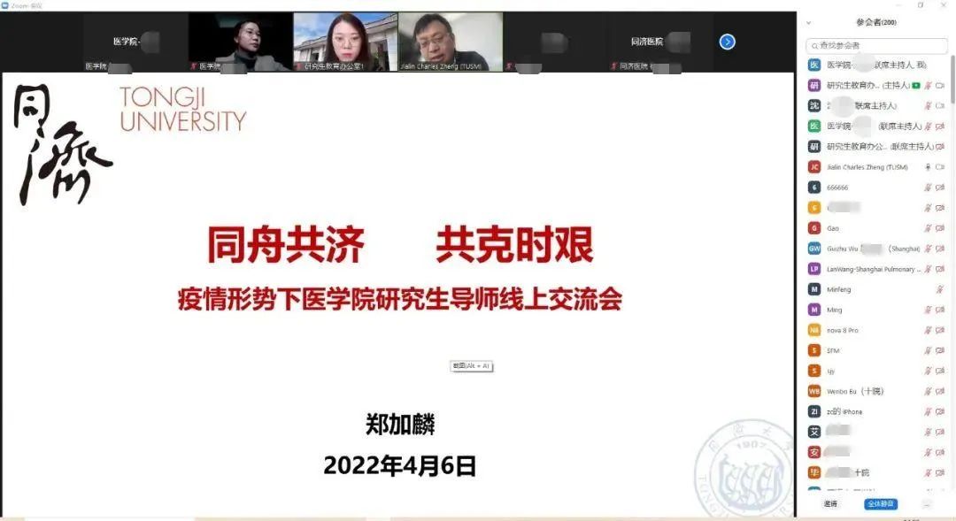当前,上海疫情防控面临严峻复杂的形势,pg游戏电子模拟器师生也面临常态化防控以来最艰巨的挑战,在校师生的工作、学习和生活转入一种新的模式。为贯彻落实上海市和学校疫情防控工作的要求、切实加强导师在疫情期间对研究生的指导和关心,全面保障研究生教学和科研秩序,4月6日下午,pg游戏电子模拟器在线上组织召开了研究生导师交流会。来自pg游戏电子模拟器和附属医院的300余名研究生导师、教务管理人员相聚云端。pg游戏电子模拟器院长郑加麟就疫情期间严格落实校园封控管理和进一步加强pg游戏电子模拟器研究生导师指导工作意见作重要讲话,会议由pg游戏电子模拟器副院长成昱主持。