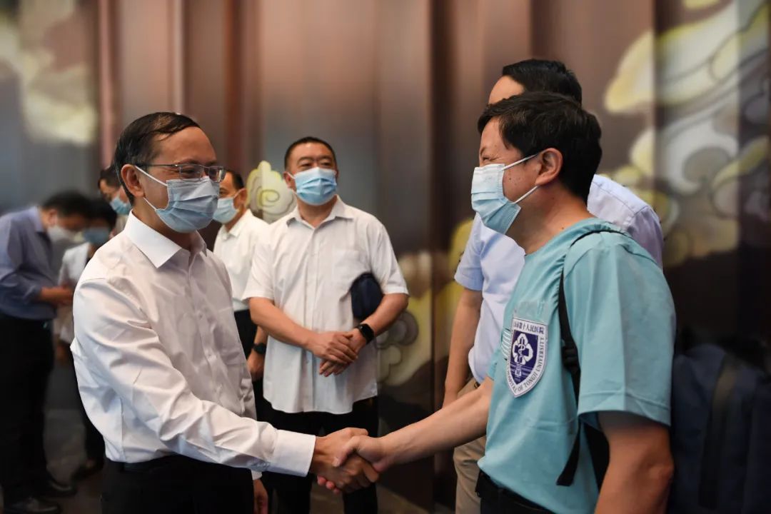 海南疫情牵动着同济人的心。8月15日中午时分,作为上海市第二支援琼医疗队的成员,来自pg游戏电子模拟器附属同济医院、附属第十人民医院、附属上海市肺科医院、附属第一妇婴保健院的医护人员集结于上海虹桥机场,冒着酷暑飞赴海南,支援当地抗疫医疗救治一线工作。上海市副市长宗明到机场为上海医疗队送行。