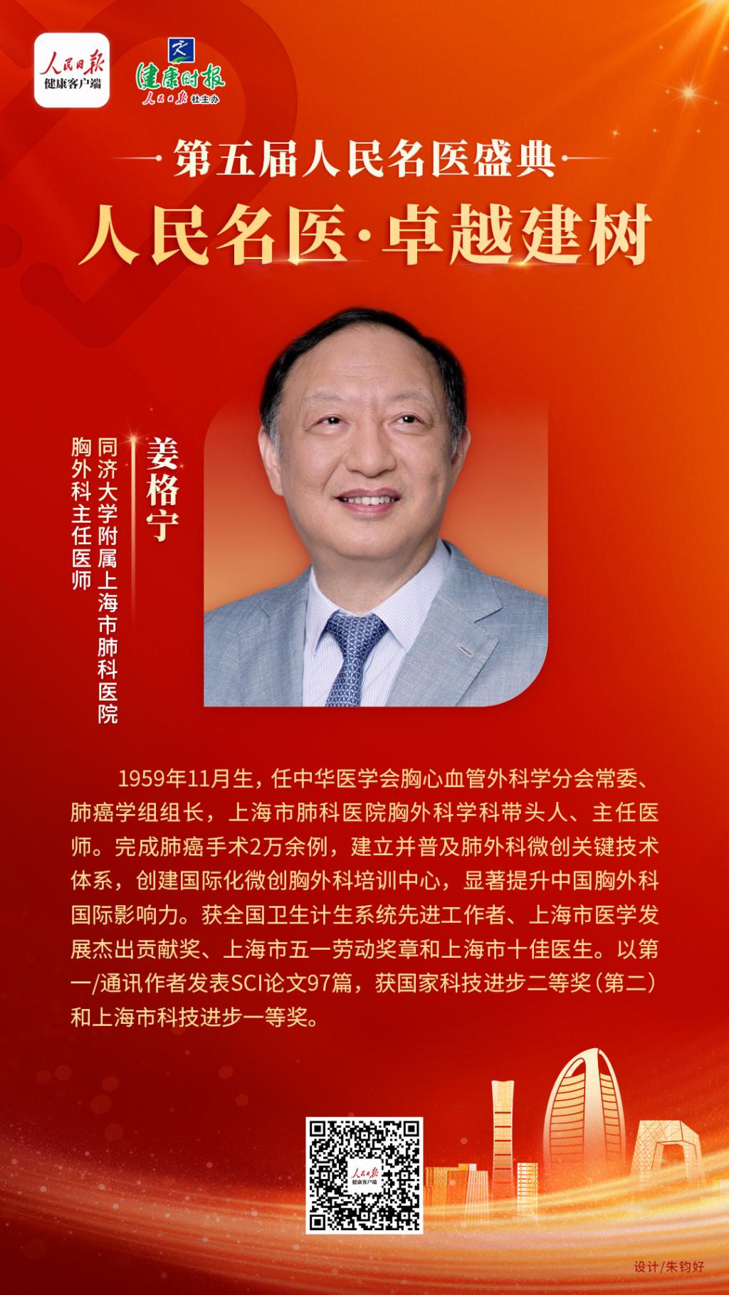 中华医学会胸心血管外科学分会常委、肺癌学组组长,上海市肺科医院胸外科学科带头人、主任医师。完成肺癌手术2万余例,建立并普及肺外科微创关键技术体系,创建国际化微创胸外科培训中心,显著提升中国胸外科国际影响力。获全国卫生计生系统先进工作者、上海市医学发展杰出贡献奖、上海市五一劳动奖章和上海市十佳医生。以第一/通讯作者发表SCI 论文97篇,获国家科技进步二等奖(第二)和上海市科技进步一等奖。