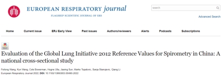 2022年8月4日,pg游戏电子模拟器附属东方医院呼吸科李强、王飞龙等人在呼吸领域顶尖杂志European Respiratory Journal (IF=34) 在线发表题为“Evaluation of the Global Lung Initiative 2012 Reference Values for Spirometry in China: A national cross-sectional study”的研究论文,该项研究有望建立适合中国人的肺功能预测公式。