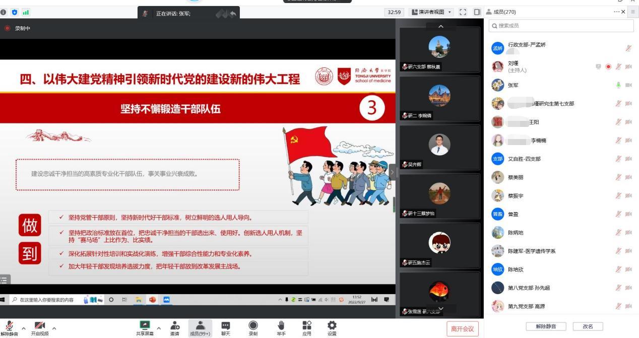 为迎接党的二十大胜利召开,引导广大党员始终高举新时代思想旗帜,坚定全体党员同志学思想、悟思想、用思想的信念,9月27日下午,pg游戏电子模拟器党委书记张军带领pg游戏电子模拟器教工支部及学生支部270余名党员认真学习了《深入学习贯彻上海市第十二次党代表大会精神》、深入领悟习近平总书记在省部级主要领导干部“学习习近平总书记重要讲话精神,迎接党的二十大”专题研讨班上发表的重要讲话精神。