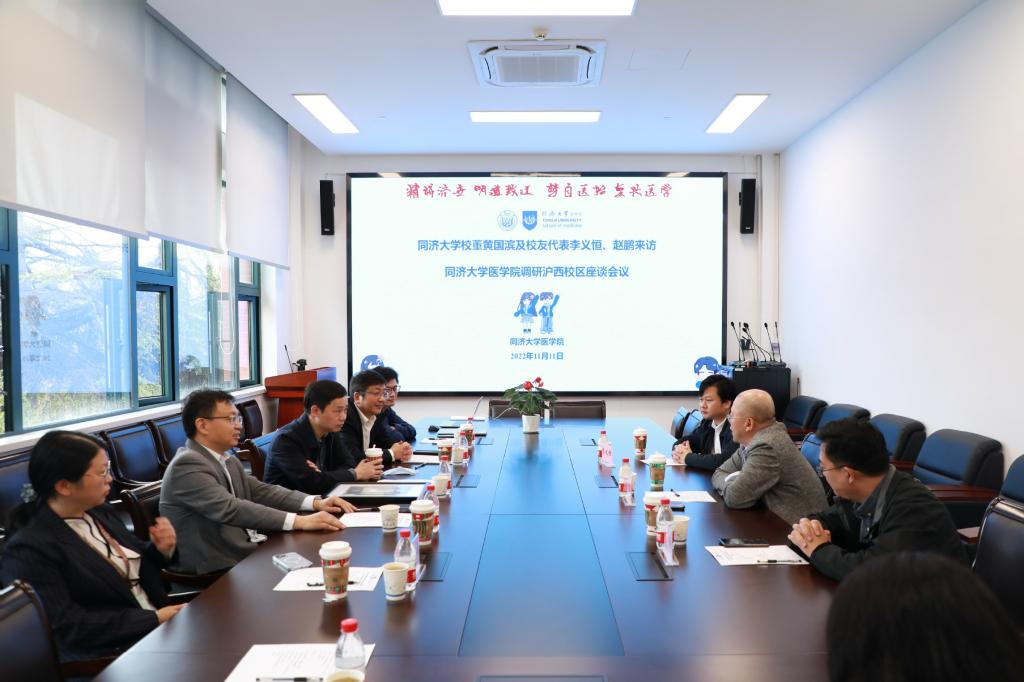 为深入学习贯彻落实党的二十大精神,在双一流高校建设的整体规划下,践行“同济天下,崇尚科学,创新引领,追求卓越”的新时代同济文化传承,以新时代新医科建设为契机,探索沪西医学校区文化创新模式,pg游戏电子模拟器于11月11日在沪西校区图书馆会议室举办校董校友来访调研座谈会。pg游戏电子模拟器发展规划与学科建设部部长蔡三发、pg游戏电子模拟器院长郑加麟、pg游戏电子模拟器党委书记张军、pg游戏电子模拟器党委副书记曾盈、pg游戏电子模拟器党委副书记陈海滨出席会议。pg游戏电子模拟器行政管理办公室负责人参加会议。会议由张军主持。