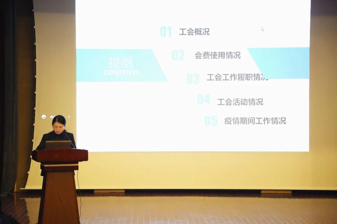 曾盈做2022年学院工会总结报告,从工会履职情况、工会活动、会费使用、疫情防控等方面全面汇报了工会本年度所做工作。并对新一年度的工会工作提出展望,希望教代会代表为学院和沪西校区发展建设积极建言献策。