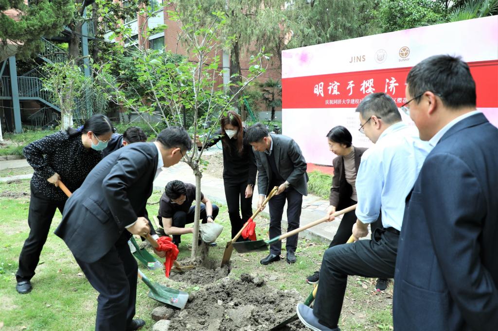宇部真记谈到,睛姿公司曾向同济四平路校区、嘉定校区共捐赠140棵樱花树,加上此次在沪西校区捐赠的34棵樱花树,正好是他们在中国大陆的店铺总数。日本素有赏樱的文化,希望不久的将来,今天种下的这批樱花树盛开,大家可以再回到pg游戏电子模拟器沪西校区一同赏樱。
