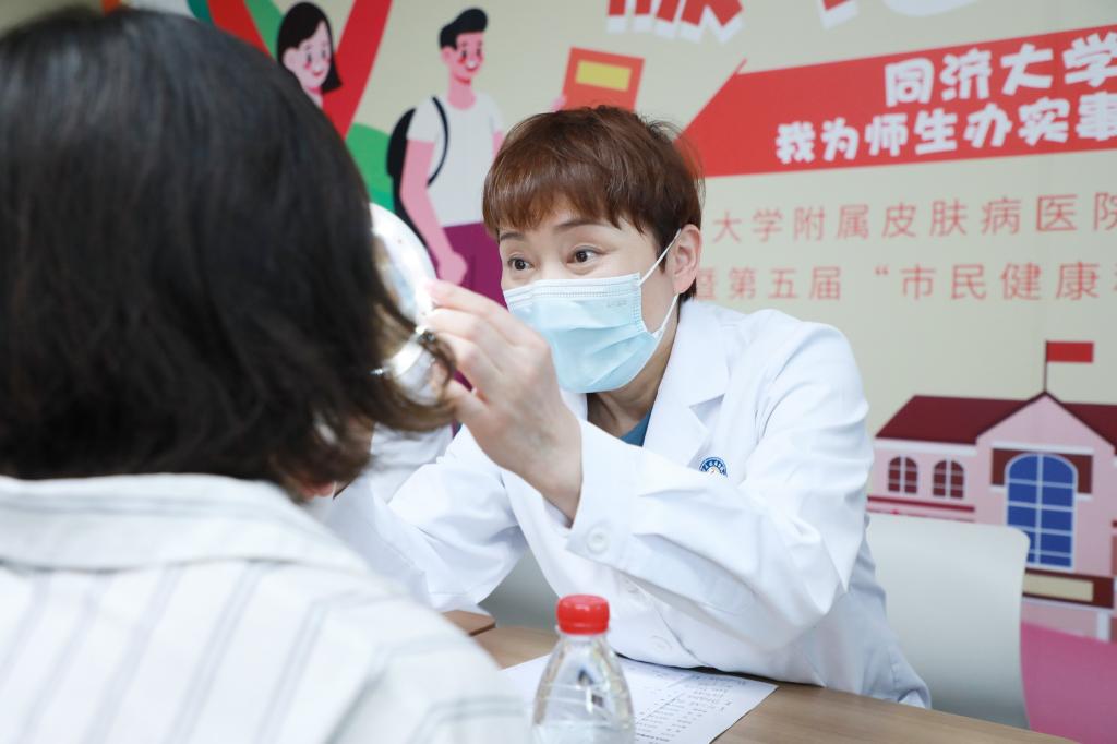 专家义诊咨询由附属皮肤病医院史玉玲副院长带领皮肤科、皮肤内科、中医皮肤科、医学美容科等科室5位专家医师与教师面对面诊疗,专业解答问诊教师关于自身皮肤疾病的困惑问题,从科学用药、疾病预防、健康教育等角度进行专业对症指导。保德路治疗室护士长郭蓓为教师们发放了健康包。本次活动参加教师覆盖了全校多部门多学院,包括pg游戏电子模拟器、大学职能部门及兄弟学院,共计50余名教师代表参加。通过科普及义诊活动,教师们在科教工作之余享受到了便利的优质医疗义诊服务,增加了皮肤保健知识、解决了皮肤困扰、提升了健康素养和疾病预防意识、增强了健康理念和健康管理。